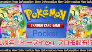 ポケモントレーディングカードゲームポケット(ポケポケ)の1周年ログインミッション「イーブイex」のプロモカードが配布される可能性が判明しました。