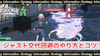 ポケモンレジェンズZAのポケモンジャスト交代回避のやり方とコツを紹介しています。「ポケモンZAの交代回避のやり方」「ポケモンZAの交代回避の回数制限」「ポケモンZAの交代回避を成功させるコツ」
