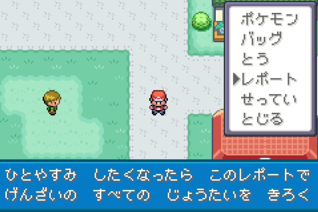 ファイアレッド・リーフグリーンのプレイデータは手動でレポートを行うことで保存することができます。