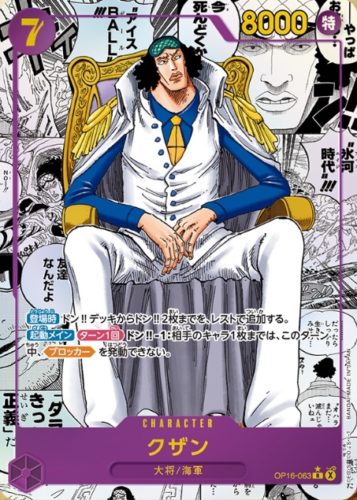 また、後ほど詳しく紹介しますが、ワンピースカード 決戦の刻にはクザンの他に「ボルサリーノ」「サカズキ」のコミパラも収録されることが判明しています。