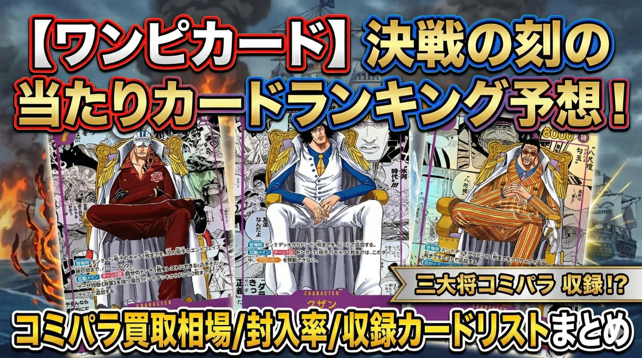5月30日発売のワンピースカード新弾 決戦の刻の当たりカードランキングを徹底予想!決戦の刻のコミパラカードの収録予想や収録カードリストを解説しています。