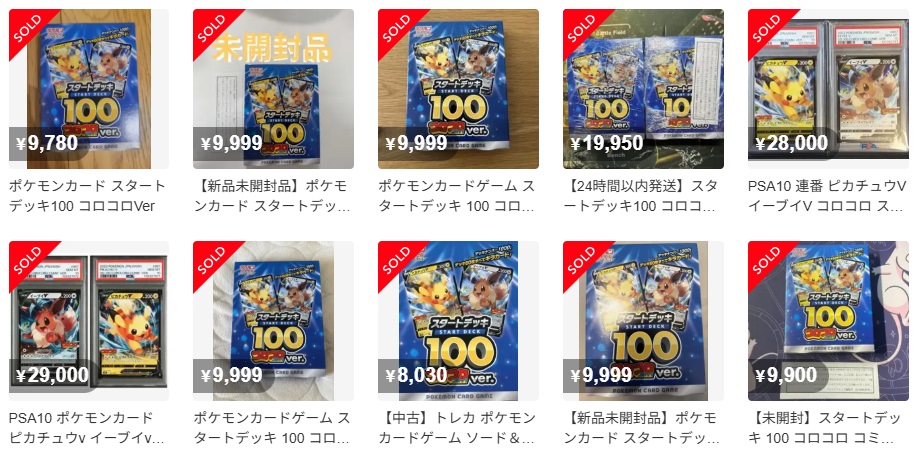 4年前に月刊コロコロコミック応募者10万人特別サービスにて購入できた「スタートデッキ100 コロコロコミックver.」は現在10,000円前後の相場となっています。