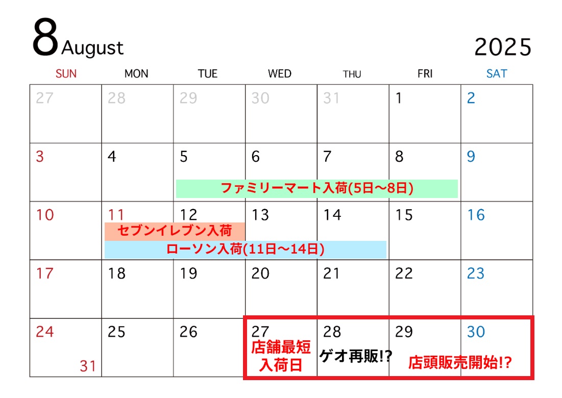 8月中旬頃にコンビニで再販入荷