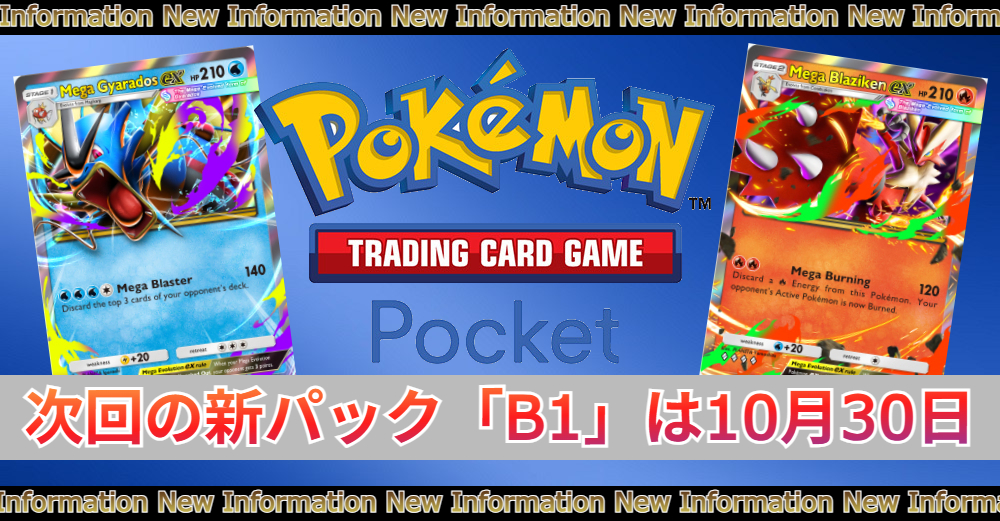 ポケポケ次回の新パック「B1」は2025年10月30日にリリースされる予定です。「ポケポケリリース1周年記念のパック」「ポケポケ新シリーズが開幕」「ポケポケ メガシンカの登場はいつ!?」といった人は参考にしてください