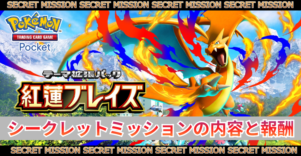 ポケポケの紅蓮ブレイズのシークレットミッション一覧。「紅蓮ブレイズのシークレットミッションの内容」「紅蓮ブレイズのシークレットミッションのコンプリート報酬」「紅蓮ブレイズのシークレットミッションのエンブレム」