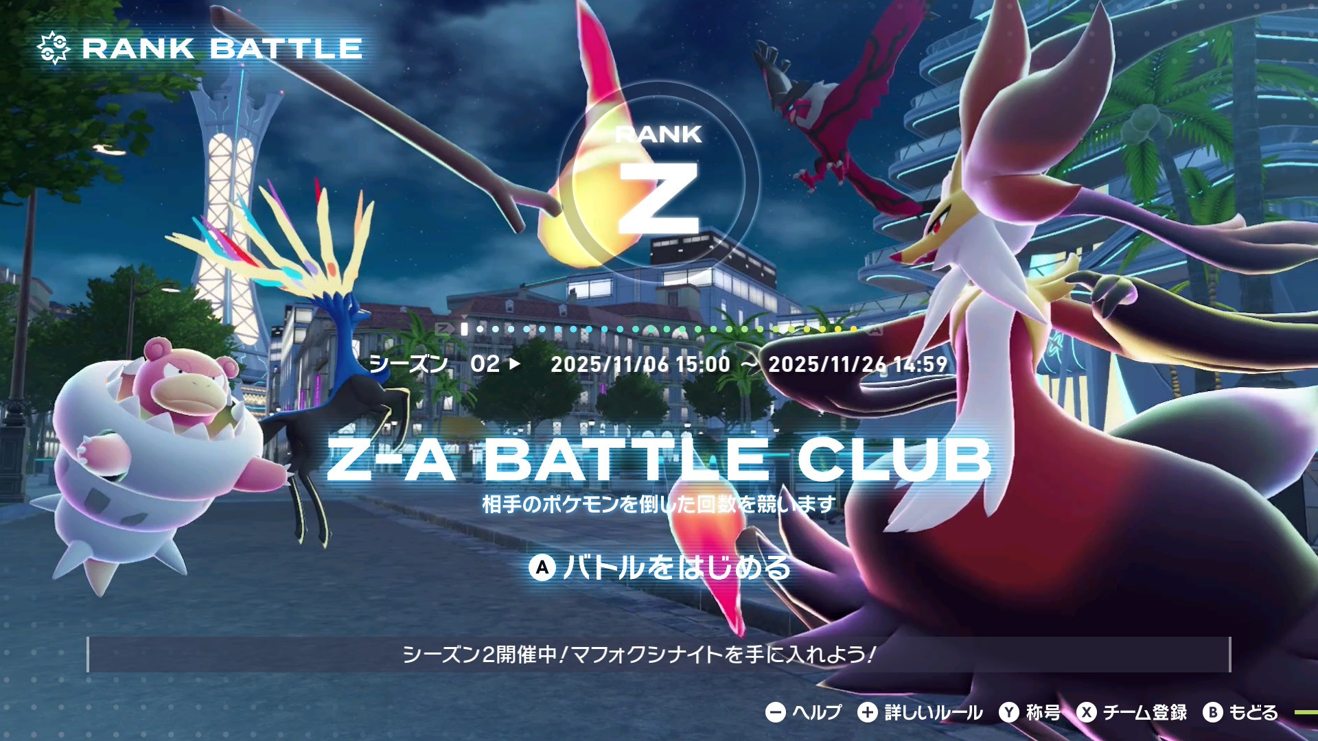 ポケモンZAランクマッチシーズン2から新たに「ゼルネアス」「イベルタル」「ディアンシー」が使用できるようになりました。