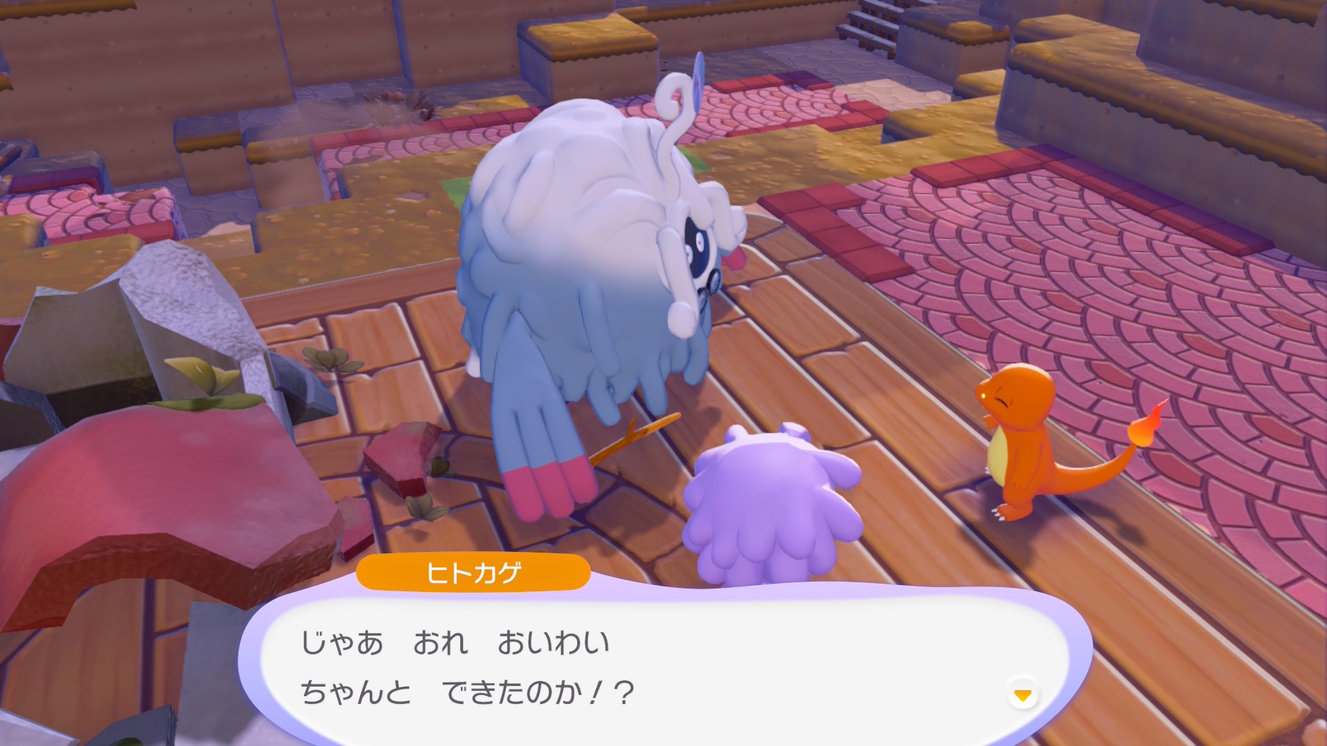 ゲーム序盤にポケモンセンターの建て直しを大事なおねがいごととして依頼されるのですが、ポケモンセンターの建て直しのために購入する必要がある「ポケセンたてなおしキット」の購入条件としてメタモンのはた立てた自分の家が必要です。