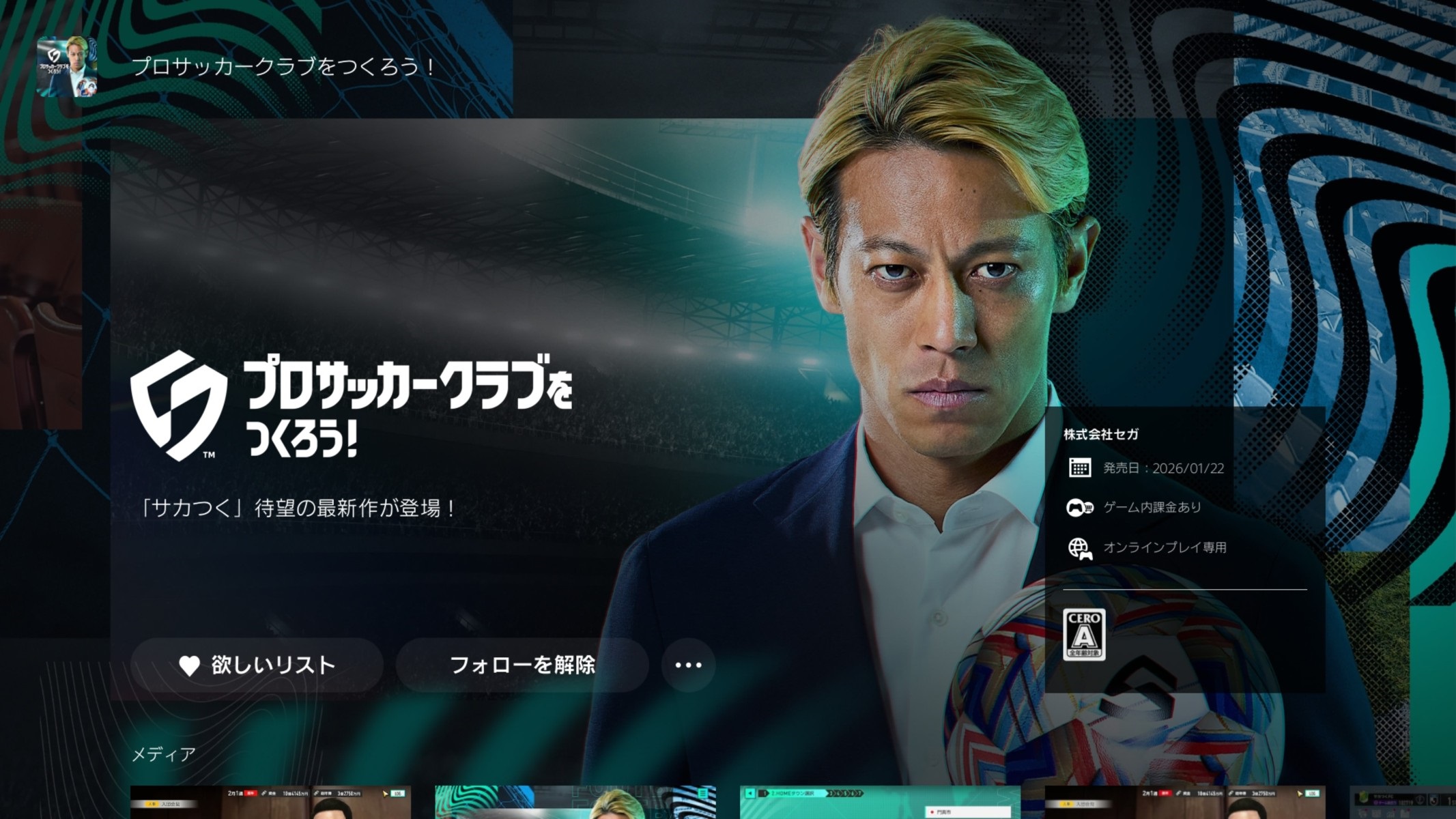 サカつく2026の事前ダウンロードは1月21日から開始しています。
