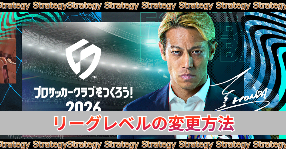 プロサッカークラブをつくろう!2026のリーグレベルの変更方法を紹介しています。「サカつく2026のおすすめのリーグレベル」「サカつく2026の対戦相手が弱い」「サカつく2026の対戦相手が強すぎて勝てない」